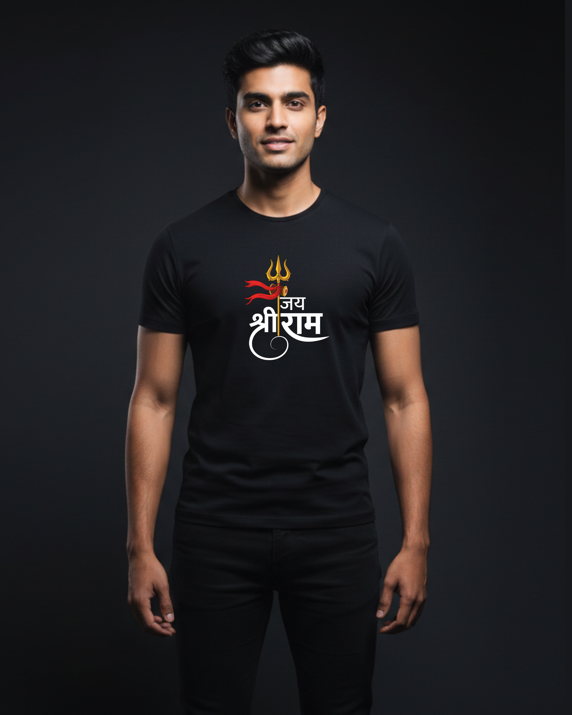 Jai Shree Ram Trishul Unisex Classic Crew black T-Shirt | Premium 180 GSM Cotton
